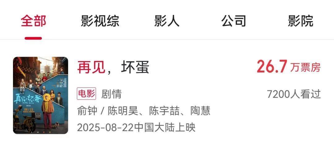 据猫眼专科版数据袒露,电影《邂逅,坏东西》已于8月22日上映,上映6天,票房仅有26.7万元。