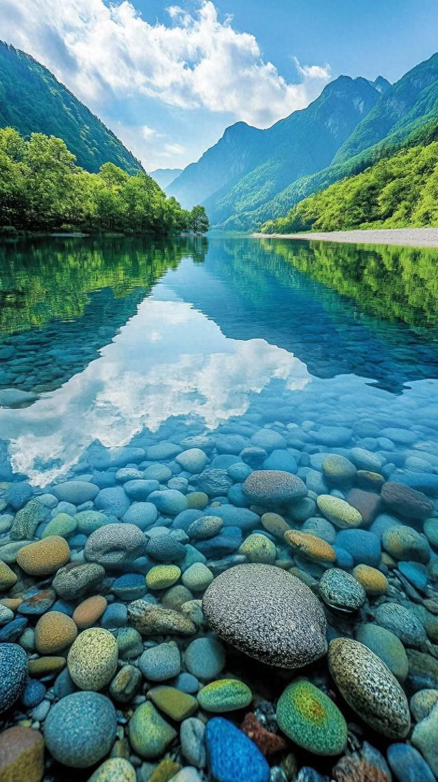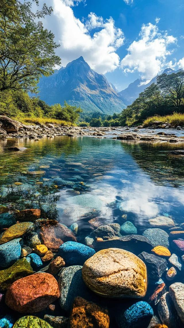 眼神落于这幅像片,如踏入虚幻当然之境,满是宁静与好意思好。近景里,澄净水域宛如一块雄伟的透明水晶,水底石头大小不一、款式互异,似是大当然精真金不怕火散落的艺术品,它们相互交汇,造成充满动态的视觉盛宴。阳光穿透水面,石头名义被镀上一层微光,让水显得越发清透皑皑,水光潋滟间满是灵动之好意思。