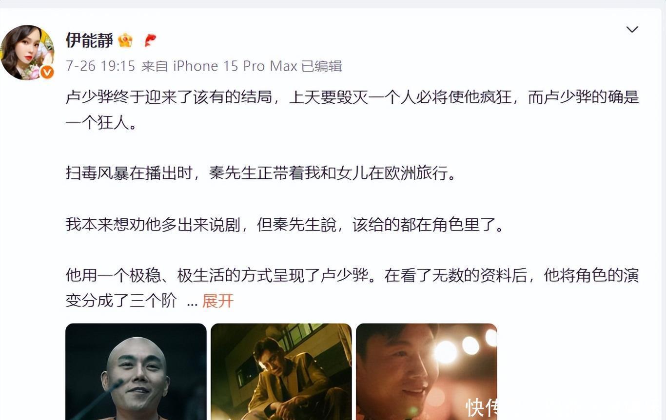 博文中,伊能静点评了秦昊在前段时间的一部警匪剧里上演的扮装,在这部剧刚播出时,一家东谈主正在欧洲旅游。