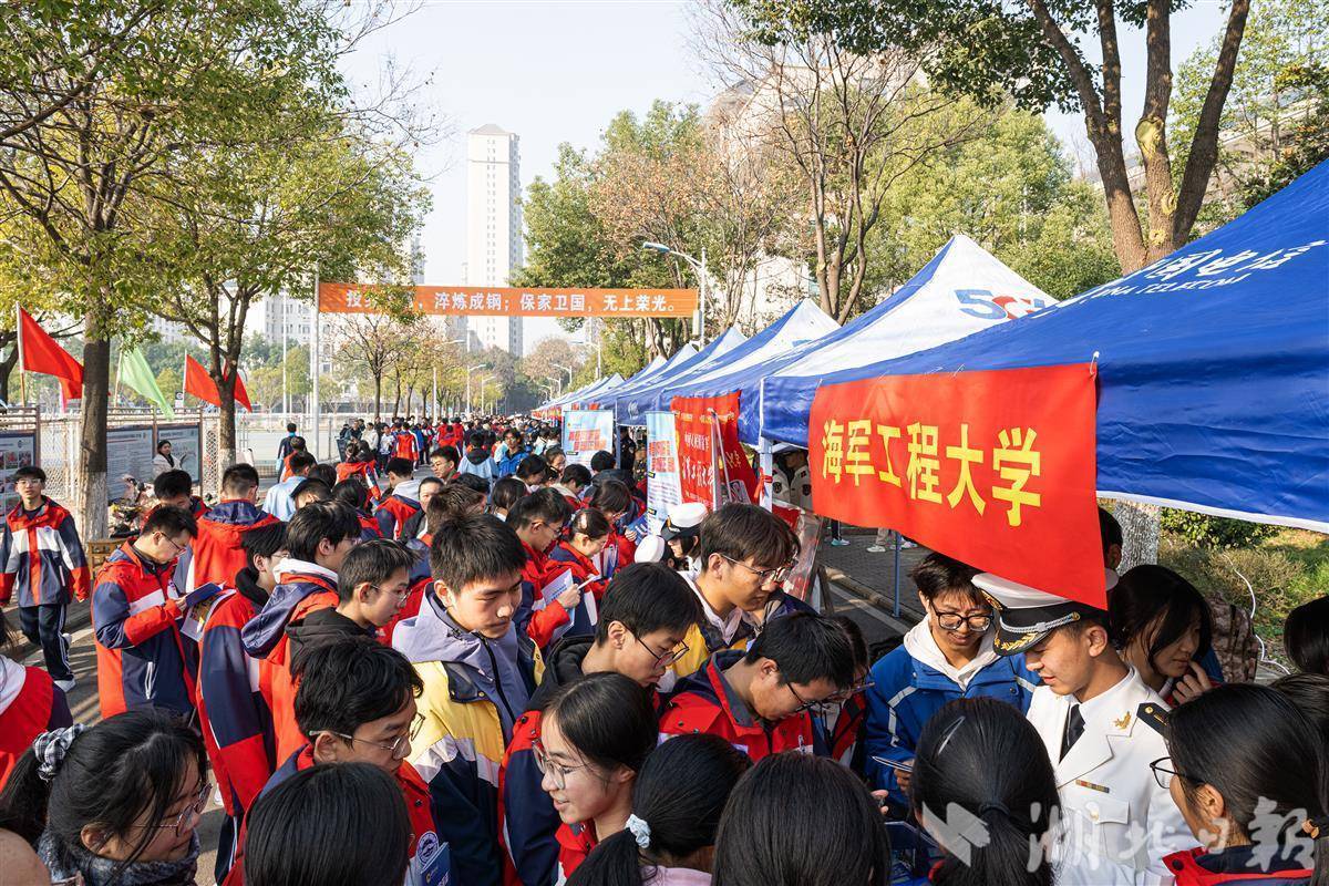 12月6日,戎行院校招生宣传暨国防老师巡讲作为在襄阳五中举行,三军21所招收本科生的顶尖军事院校初度麇集。(湖北日报全媒记者 任勇 曾雅青 通信员 曹翰文 肖云飞 摄)